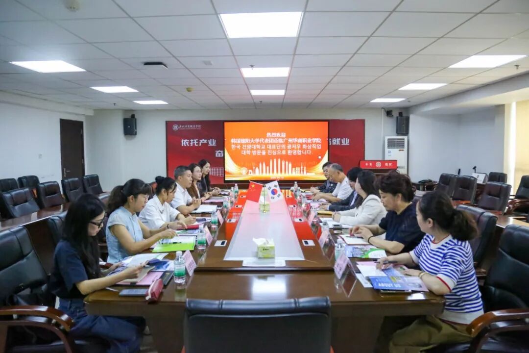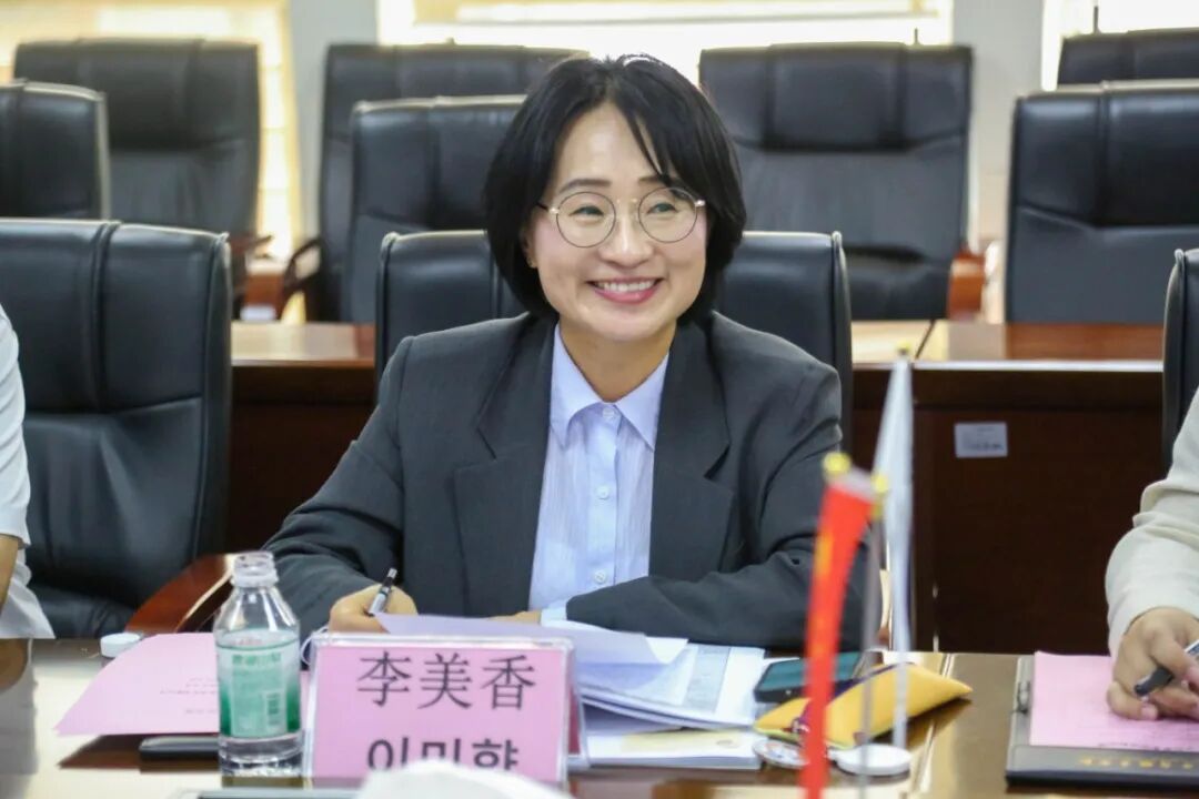 在钱芳、屠美、洪文艳陪同下,李美香一行先后走访了桃花岛电商实训基地、动漫产业学院及模拟医院(含眼视光实训基地)。在参观过程中,韩方代表详细了解了我校在产教融合模式下的教学开展情况,并实地观摩了学生的实操演练。
