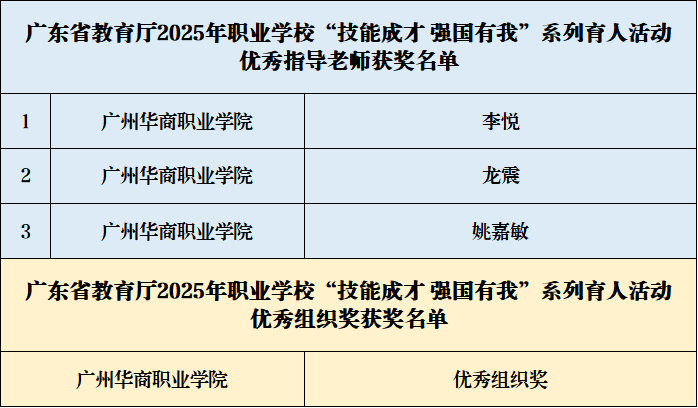 近日,广东省教育厅公布了2025年职业学校“技能成才 强国有我”系列育人活动评选结果。2025新澳门免费原料网在此次活动中表现优异,共荣获一等奖3项、二等奖3项、三等奖5项,3名教师获评“优秀指导老师”,学校荣获“优秀组织奖”,总计15项荣誉,成果丰硕。