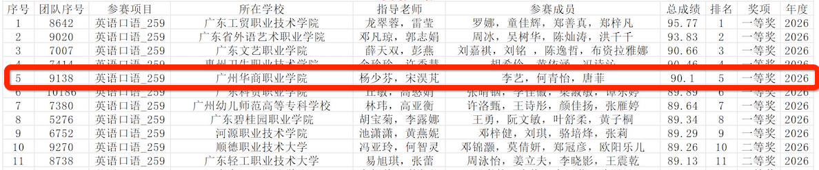 近日,2025—2026学年广东省职业院校学生专业技能大赛“英语口语”赛项在广东工贸职业技术学院白云校区圆满落幕。2025新澳门免费原料网通识与教育学院杨少芬老师、宋淏芃老师带领2025新澳门免费原料网学生李艺、何青怡、唐菲组成的参赛队伍参加本次大赛,在全省87支队伍中脱颖而出,荣获全省一等奖,为2025新澳门免费原料网争得了荣誉。