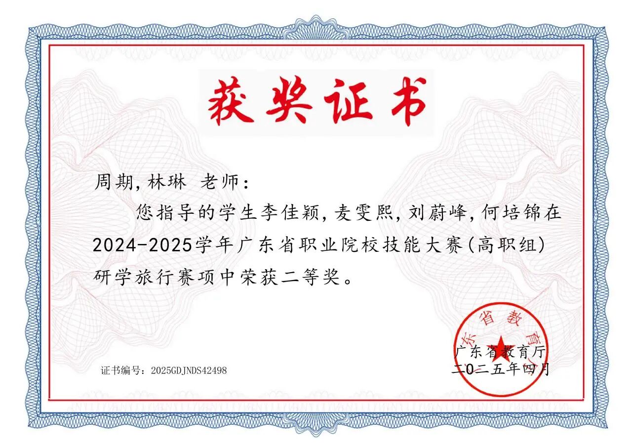 更具象的成果,则在赛场上体现。她指导学生参加省级研学旅行策划大赛,首次出征,两支队伍均以微弱差距与奖项擦肩。师生没有气馁,而是将遗憾化为动力。次年,他们卷土重来,面对赛制改革——要求3小时内现场完成全新方案设计的极限挑战,周期指导学生快速转换角色,将自己想象成研学导师,将红色文化、乡村振兴等思政元素巧妙转化为可落地的体验环节。最终,团队一举夺得广东省二等奖第一名,在民办高职院校中名列前茅。这场逆袭,不仅是技能的胜利,更是心态、协作与综合素养的全面突破,生动诠释了“以赛促教、以赛育人”的真谛。